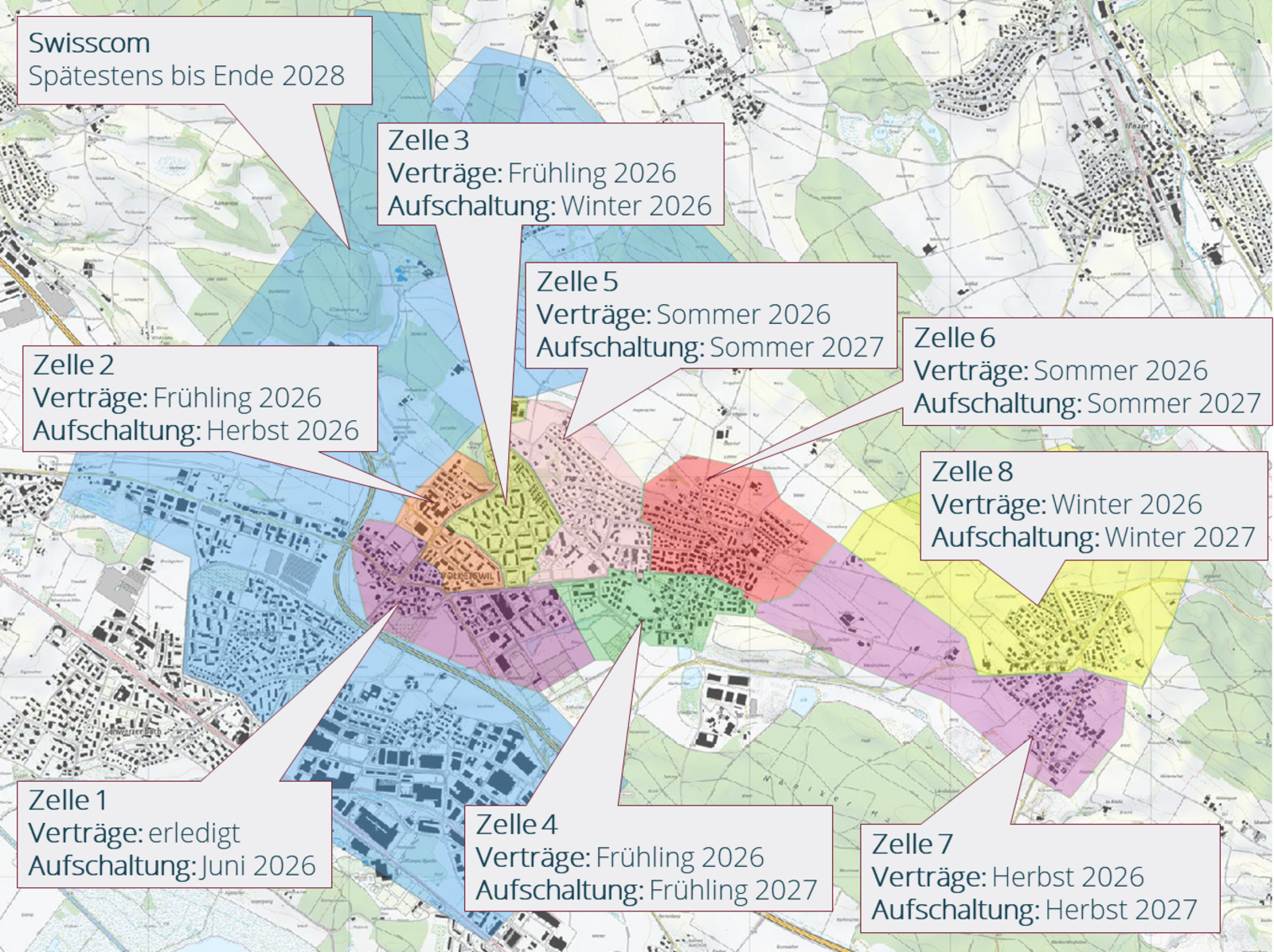 Sind diese Arbeiten abgeschlossen, werden die gebauten Anschlüsse für die Vermarktung freigegeben und die Bewohner der betreffenden Liegenschaften können ihre Dienste beim Anbieter ihrer Wahl bestellen.