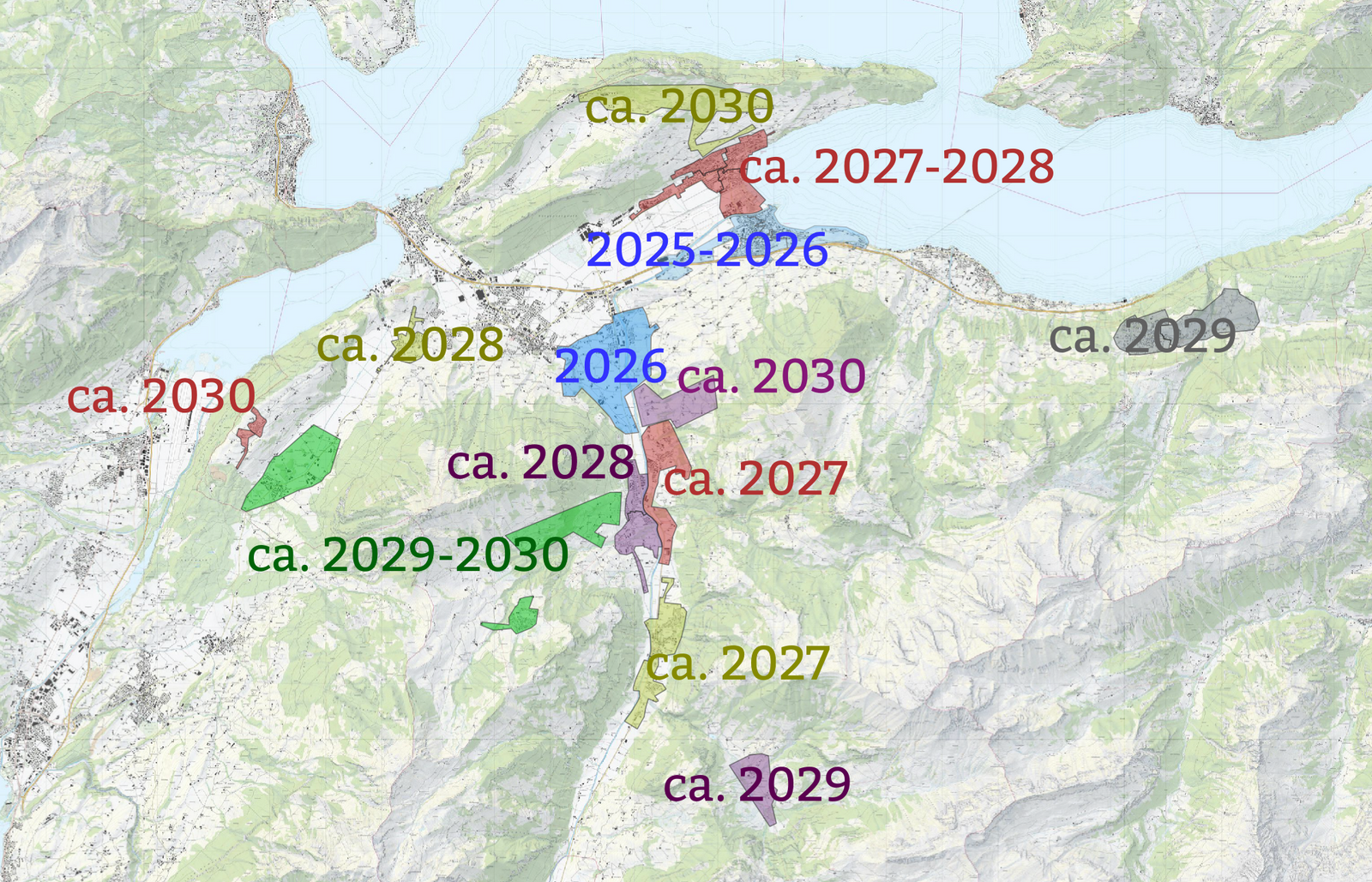 Glasfasernetze werden typischerweise in Zellen gebaut, also Stück-für-Stück. In der Phase der Netzplanung werden diese Zellen je nach technischen Gegebenheiten definiert, gebaut und in Betrieb genommen. Der unten dargestellte Zellen- und Zeitplan wird laufend aktualisiert.